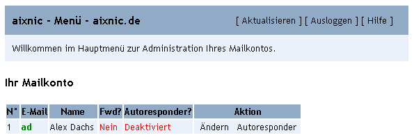 - Autoresponder?: Statusmeldung, ob der Autoresponder aktiv ist.